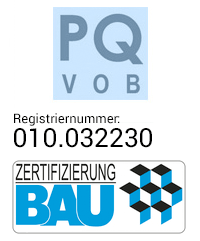 Mitte November 2009 ließen wir uns zum ersten Mal bei „Zert-Bau” präqualifizieren. Die Präqualifikation ist die vorgelagerte, auftragsunabhängige Prüfung der Eignungsnachweise entsprechend der in § 8 VOB/A definierten Anforderungen. Damit können wir unsere Eignung gegenüber den öffentlichen Auftraggebern nachweisen.